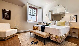 Pousada Vila Real de Santo António beschikt in totaal over 57 stijlvolle kamers, verdeeld over twee historische gebouwen aan beide kanten van het plein (Alfândega of Igreja). Bijna geen kamer is gelijk maar met veel inventiviteit is een prachtig hotel gecreërd.